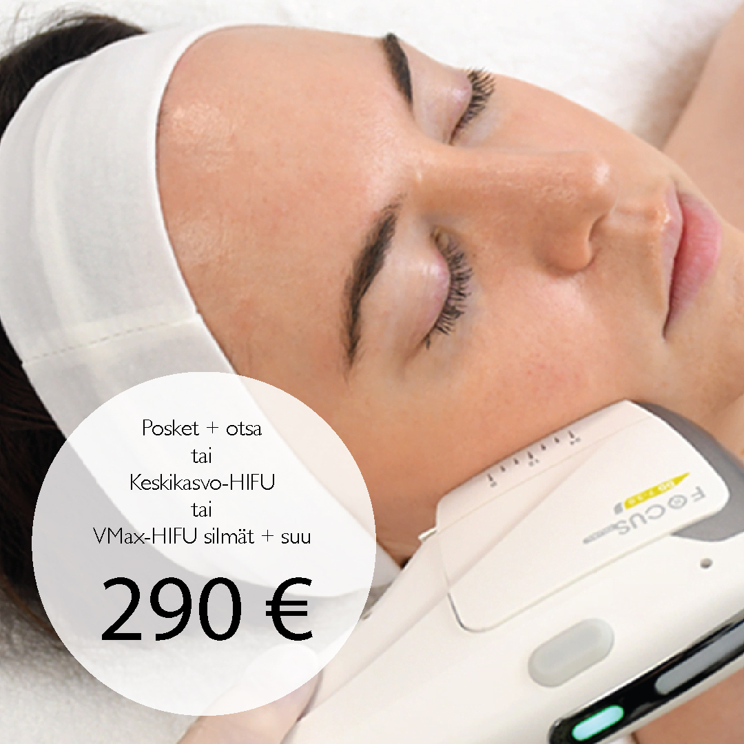 Valitse itsellesi sopivin HIFU-paketti: posket+otsa, keskikasvo-HIFU tai VMax-HIFU silmien ja suun ympärys
