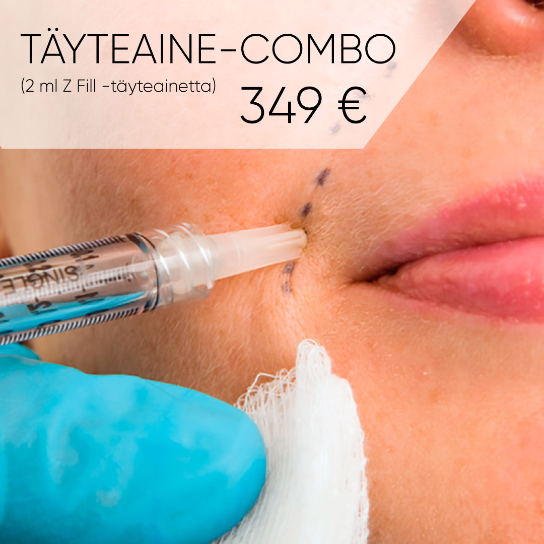 Täyteaine-combo soveltuu mm. yläkasvoille, keskikasvoille ja leukaan.