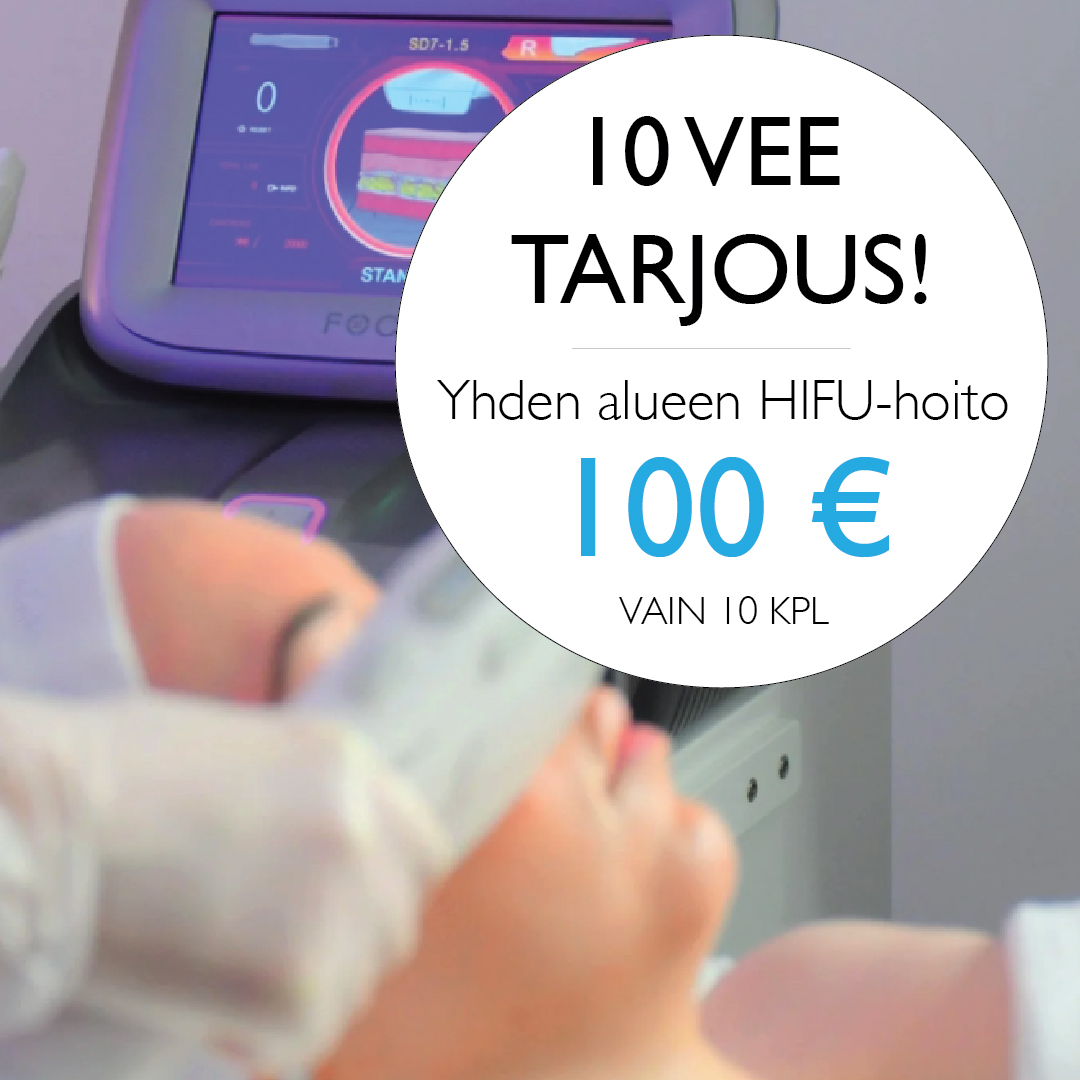 Yhden alueen HIFU-hoito voi olla mm. otsa, posket, leukalinja tai kaula